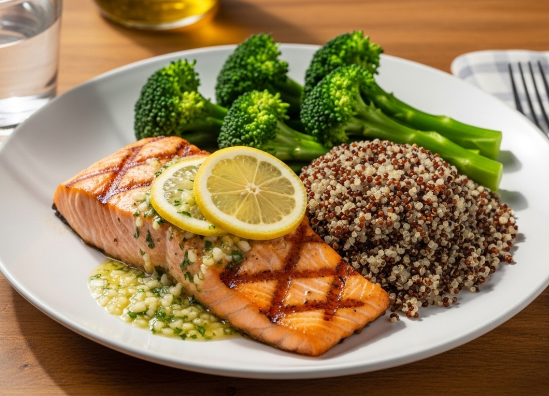 SALMÃO GRELHADO COM QUINOA E BRÓCOLIS: O “PADRÃO OURO” DA COMIDA FUNCIONAL QUE VOCÊ PRECISA CONHECER